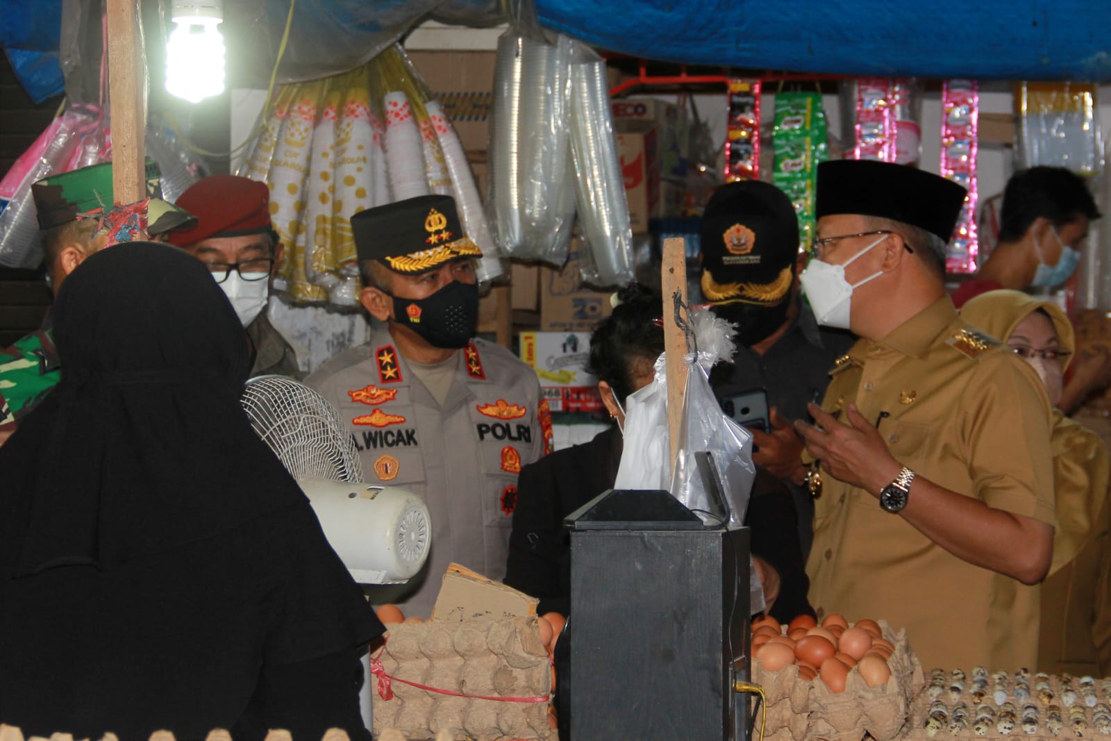 Uselnews.com, Bengkulu - Gubernur Rohidin Mersyah bersama Forkopimda Provinsi Bengkulu meninjau Pasar Panorama guna melakukan pemantauan harga dan ketersediaan stok minyak goreng curah serta beberapa komoditas lainnya, seperti beras, daging dan telur ayam, Selasa (5/4/2022).