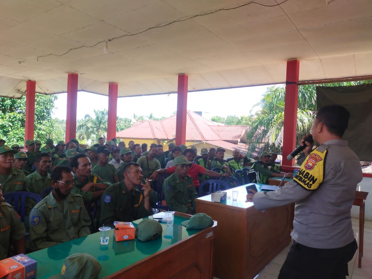 Bengkulu Utara - Polsek Giri Mulya Polres Bengkulu Utara Polda Bengkulu melaksanakan Sosialisasi dan pemberian materi kepada Linmas Kecamatan Giri Mulya dalam Kesiapan Siagaan dalam Pemilu tahun 2024, Rabu (07/02/2024).