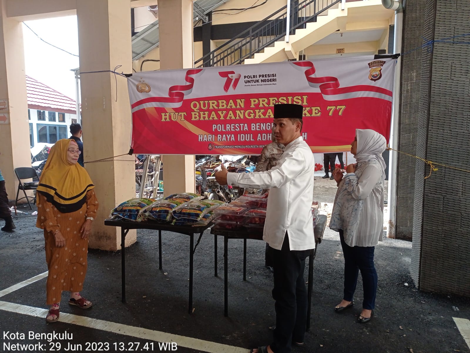 Pada hari Kamis tanggal 29 Juni 2023 pukul 09.00 WIB bertempat di Polresta Bengkulu, Jalan A.Yani No.1 Kecamatan Teluk Segara Kota Bengkulu telah dilaksanakan kegiatan pemotongan hewan qurban presisi Polresta Bengkulu Idul Adha 1444H/2023.