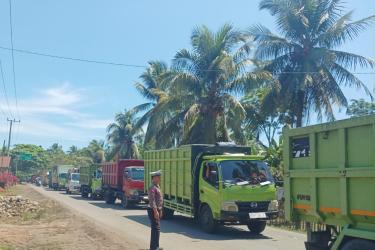 Bengkulu Utara - Satu unit tronton No Pol BD B 9395 JIN pengangkut alat berat jenis ekskavator menga