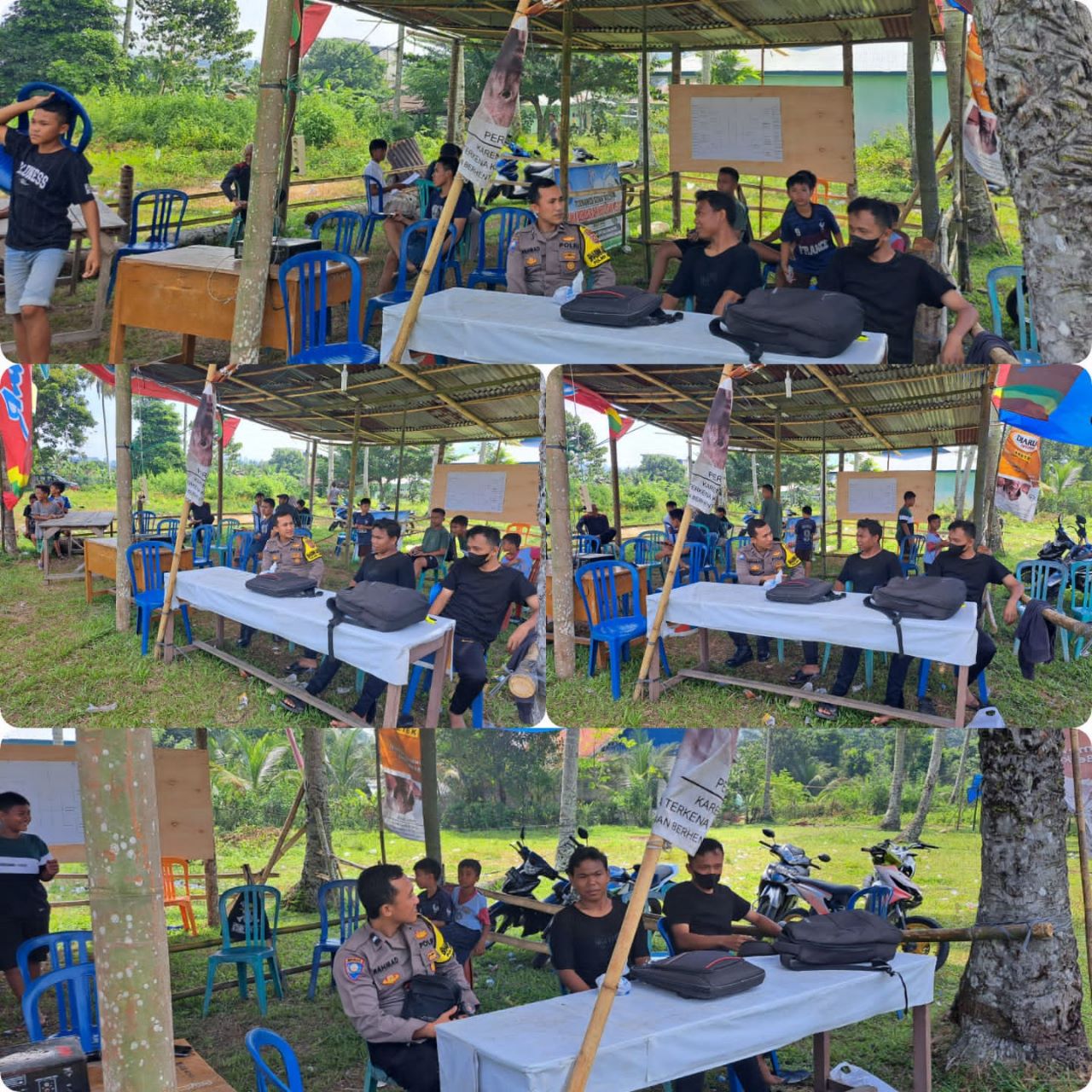 Bengkulu Selatan - Bhabinkamtibmas Polsek Seginim Polres Bengkulu Selatan Polda Bengkulu, Aipda Rahmat Hidayat, S.H., melaksanakan monitoring situasi kegiatan Open Turnamen Sepak bola di Desa Suka Negeri Kecamatan Air Nipis Kabupaten Bengkulu Selatan, Sabtu (29/07/2023) sore.
