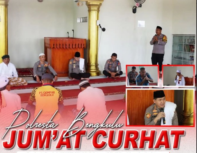 "Kegiatan Jumat Curhat ini merupakan salah satu bentuk kegiatan yang ditekankan langsung oleh Kapolri. Dimana kegiatan ini adalah salah satu bentuk upaya Polresta Bengkulu dalam mendengarkan keluh kesah masyarakat terkait situasi Kamtibmas diwilayah diwilayah masing-masing," kata Kapolresta.