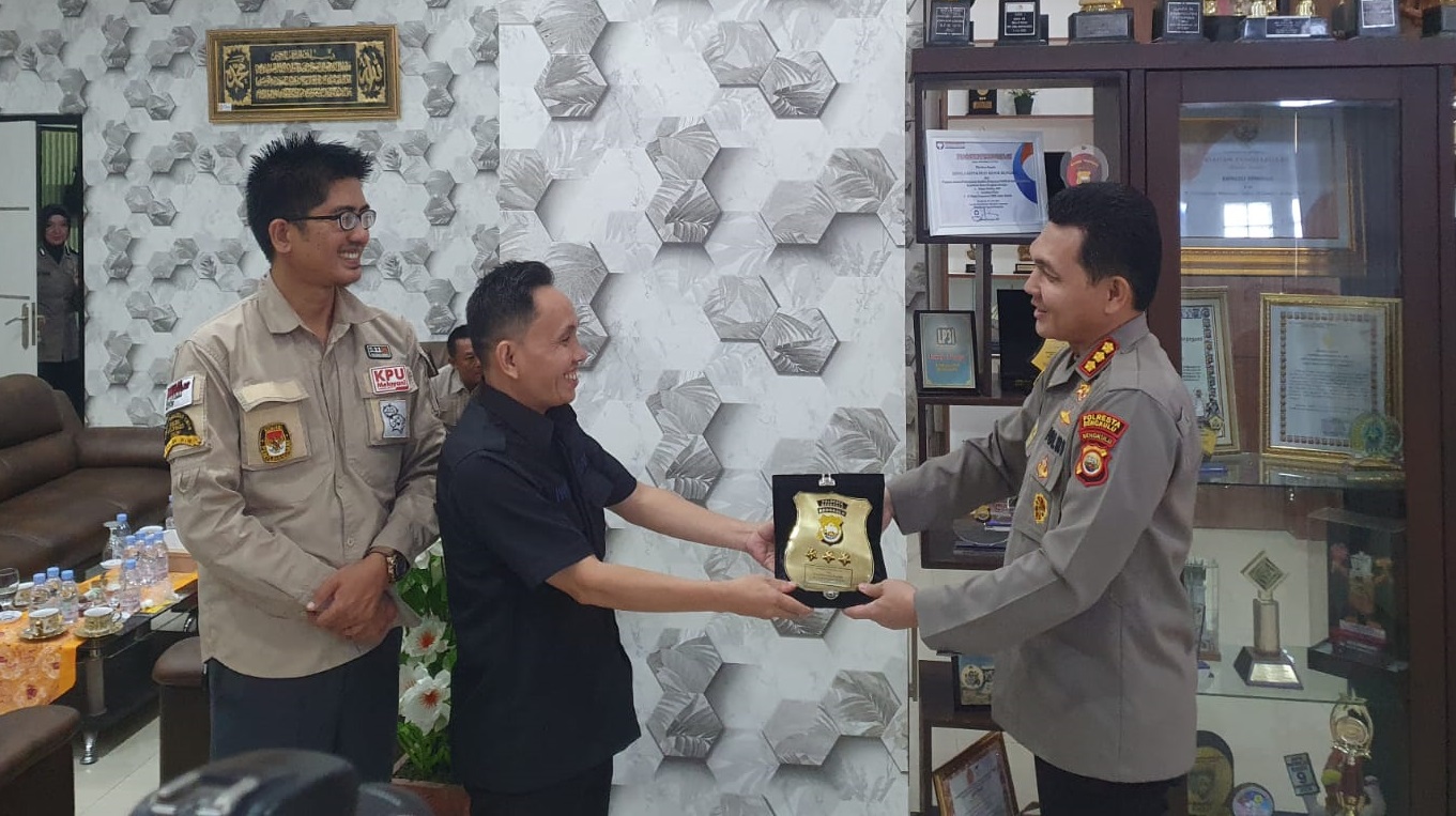 Uselnews.com, Kota Bengkulu - Ketua Komisi Pemilihan Umum (KPU) Kota Bengkulu Martawansyah, didampingi Komisioner Anggi Stephensent, Kasubag Hukum dan SDM Zohri Jundei, Kasubag Teknis Erlina, melakukan kunjungan silaturahmi ke Kapolresta Bengkulu Polda Bengkulu, Rabu (15/3/2023).