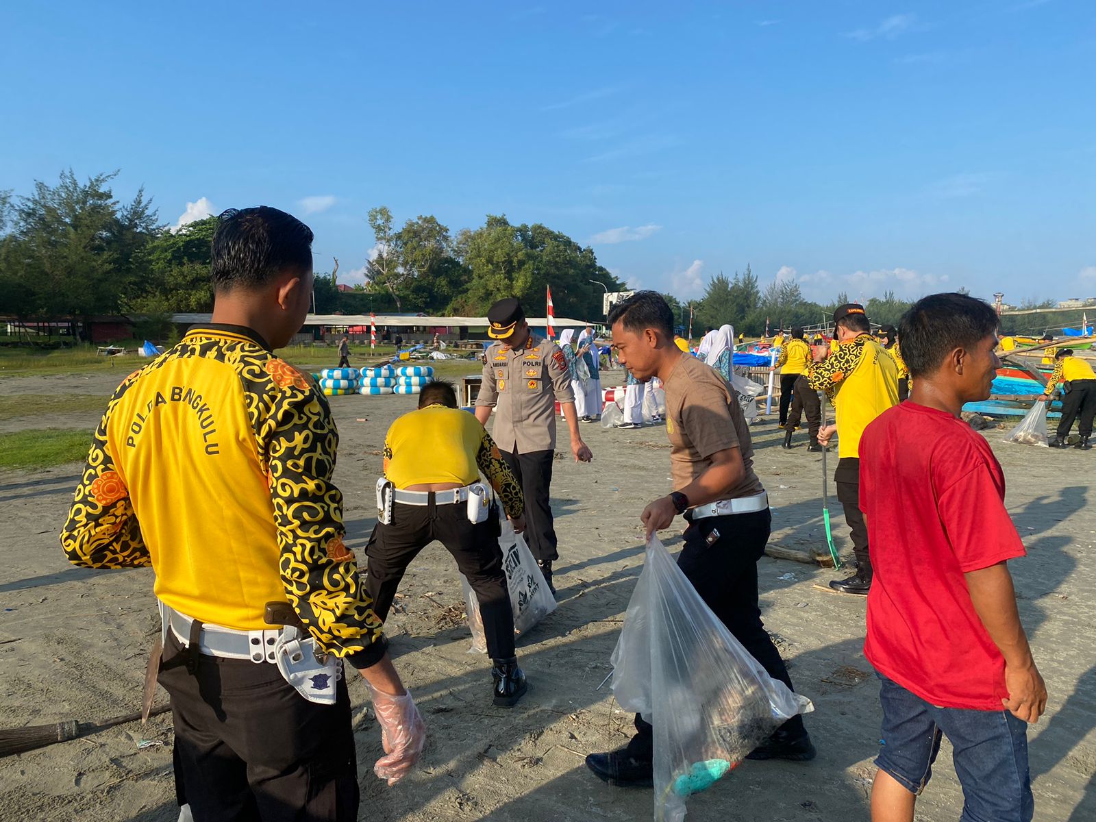 Kapolda Bengkulu Irjen Pol Drs Armed Wijaya, M.H., melalui Kabid Humas Kombes Pol Anuardi, S.I.K., M.Si., CPHR, dalam keterangan persnya menyebutkan kegiatan membersihkan kawasan pantai juga diikuti oleh Masyarakat dan Perwakilan Siswa-siswi Sekitar Lokasi.