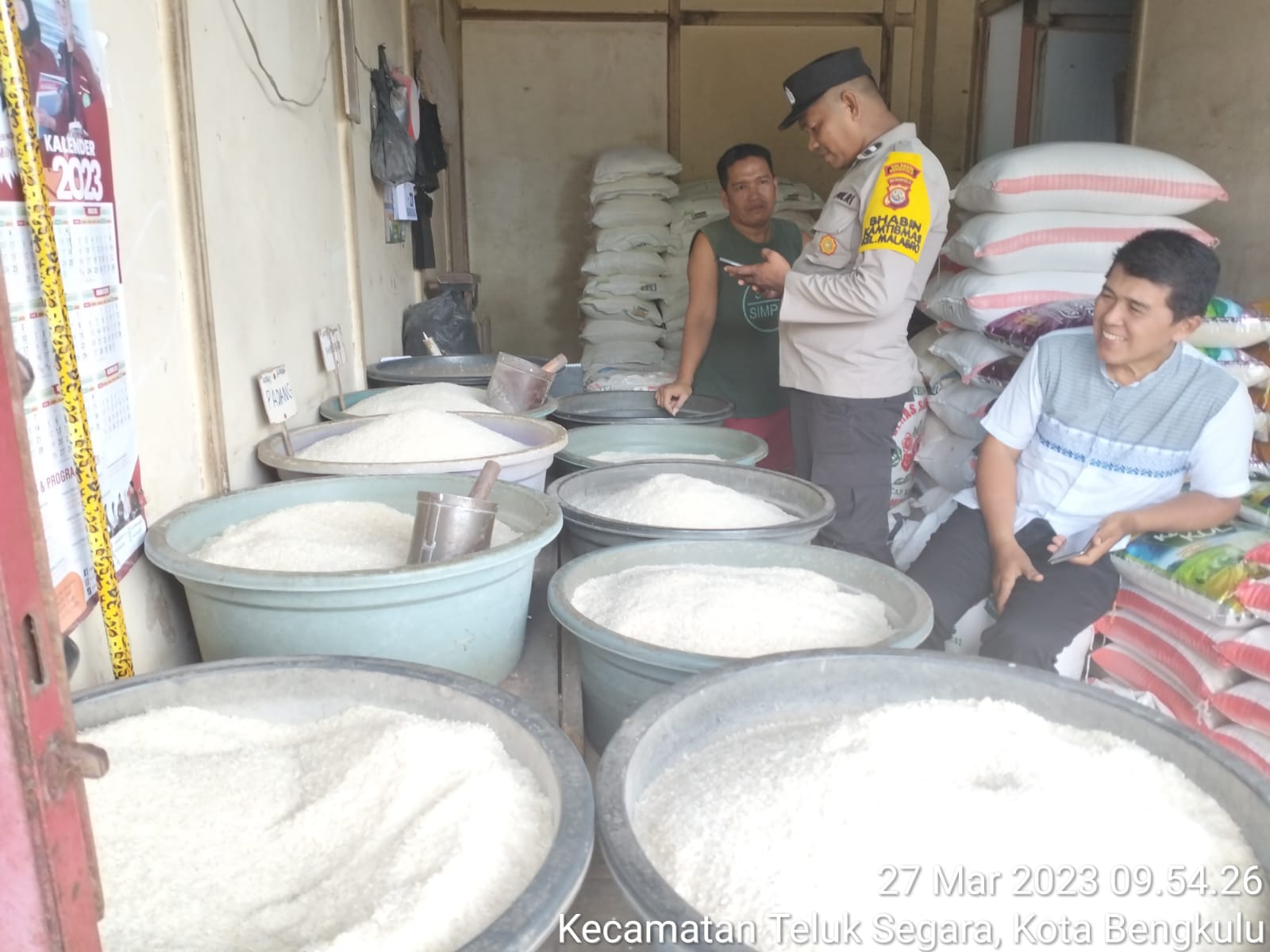 Bengkulu - Panit Opsnal Intelkam Polsek Teluk Segara Polresta Bengkulu Polda Bengkulu, pada Senin (27/3/2023), melaksanakan monitoring dan memantau ketersediaan bahan pokok di Pasar Baru Koto di Kelurahan Malabro Kecamatan Teluk Segara Kota Bengkulu.