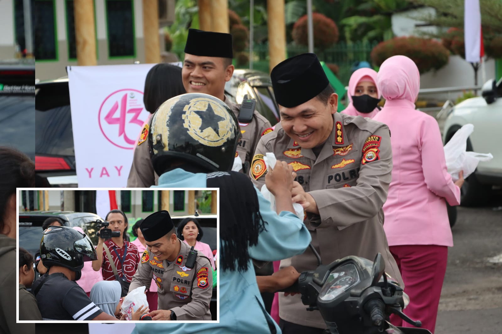 Bengkulu - Kapolresta Bengkulu Polda Bengkulu Kombes Pol Aris Sulistyono bersama PJU, Bhayangkari Cabang Kota Bengkulu, serta Kapolsek Gading Cempaka Kompol Kadek Suwantoro, membagikan takjil kepada masyarakat, Kamis (6/4/2023) sore.