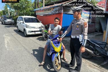 Bengkulu Selatan - Personel Sat Lantas Polres Bengkulu Selatan Aiptu Iksan Suandi, berikan teguran Simpatik kepada