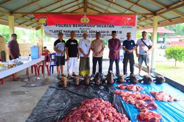 Bengkulu Selatan, - Polres Bengkulu Selatan Polda Bengkulu, melaksanakan pemotongan hewan qurban dalam Rangka Hari R