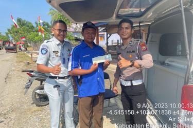 Bengkulu Selatan - Personel Polres Bengkulu Selatan Bripda Wiratama Luke.F, bersama petugas Jasa Raharja dan UPTD Sam