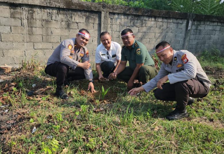 Kota Bengkulu - Polsek Gading Cempaka Kota Bengkulu ikut dalam penanaman pohon serentak bersama jajaran, Rabu (23/8)