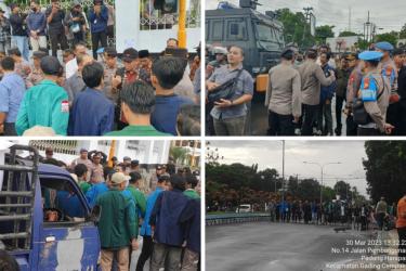 Personel Polresta Bengkulu Polda Bengkulu pada Kamis (30/3/2023) siang, melaksanakan kegiatan pengamanan aksi unjuk r