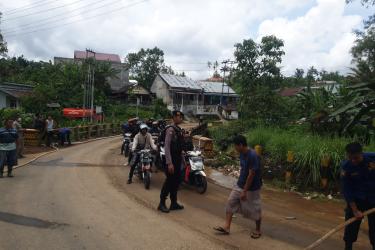 Rejang Lebong – Sat Samapta Polres Rejang Lebong Polda Bengkulu bersama warga melaksanakan pembersihan jalan sisa-sis
