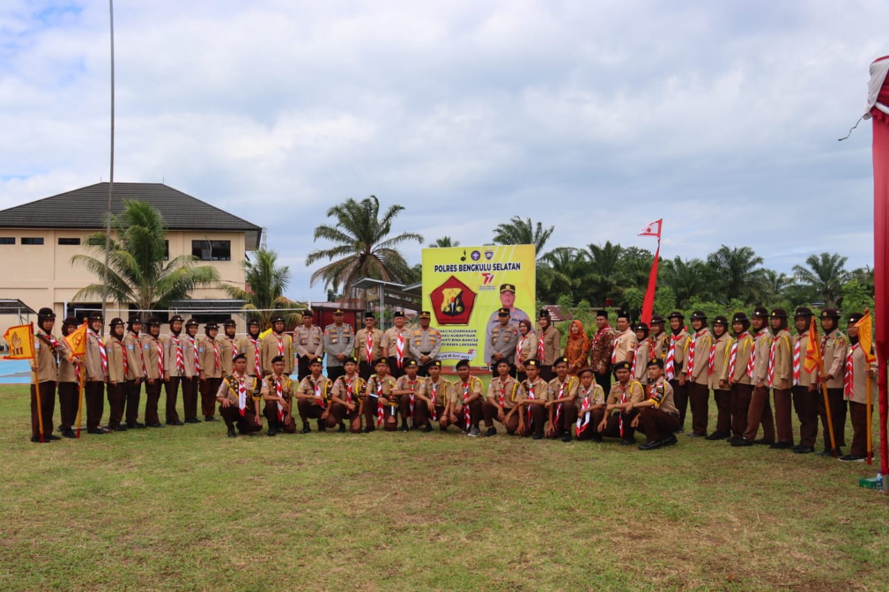Bengkulu Selatan - Dalam rangka meningkatkan pembinaan terhadap generasi muda terutama pramuka Polres Bengkulu Selatan Polda Bengkulu, melalui Sat Binmas mendidik Anggota Saka Bhayangkara dan telah melakukan upacara Pengukuhan dan Pelantikan Anggota Saka Bhayangkara Angkatan VII Kwarcab 0701 Kabupaten Bengkulu Selatan Tahun 2023, Sabtu (17/06/23).